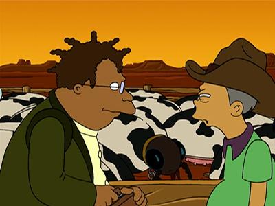 Оказывается, так марсианские аборигены собираются возвратить свои земли, некогда проданные их предками всего за одну бусину предкам Вонгов. Одетый ковбоем Киф возвращает стадо, позже спасает заложницу-Эми, марсианская бусина оказывается алмазом невероятных размеров, и гордые индигенисты с удовольствием покидают засушливую планету, купив себе новую. В общем, все довольны, за исключением Зойдберга который по какой-то причине возомнил себя братом Эми и наследником Вонгов. Его, без сомнения, ожидает облом.