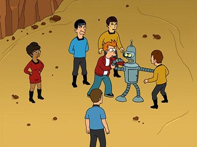 По вине Фрая, решившего возвратить Star Track публике, в эту заваруху ввязывается и наша команда. Удивительным образом ведёт себя Лила: победив конкурента в рукопашной, она расцеловывает его прямо до неприличия. Потасовка кончается, обе группы землян объединяются для побега с планеты. Мощный энергетический фанат-диктатор вдруг оказывается юным шалопаем и мамкиным сынком, команда РЕ берет на Землю фильмотеку и головы артистов в банках. В общем, серия о кризисе жанра, созданная в состоянии некоторой усталости.