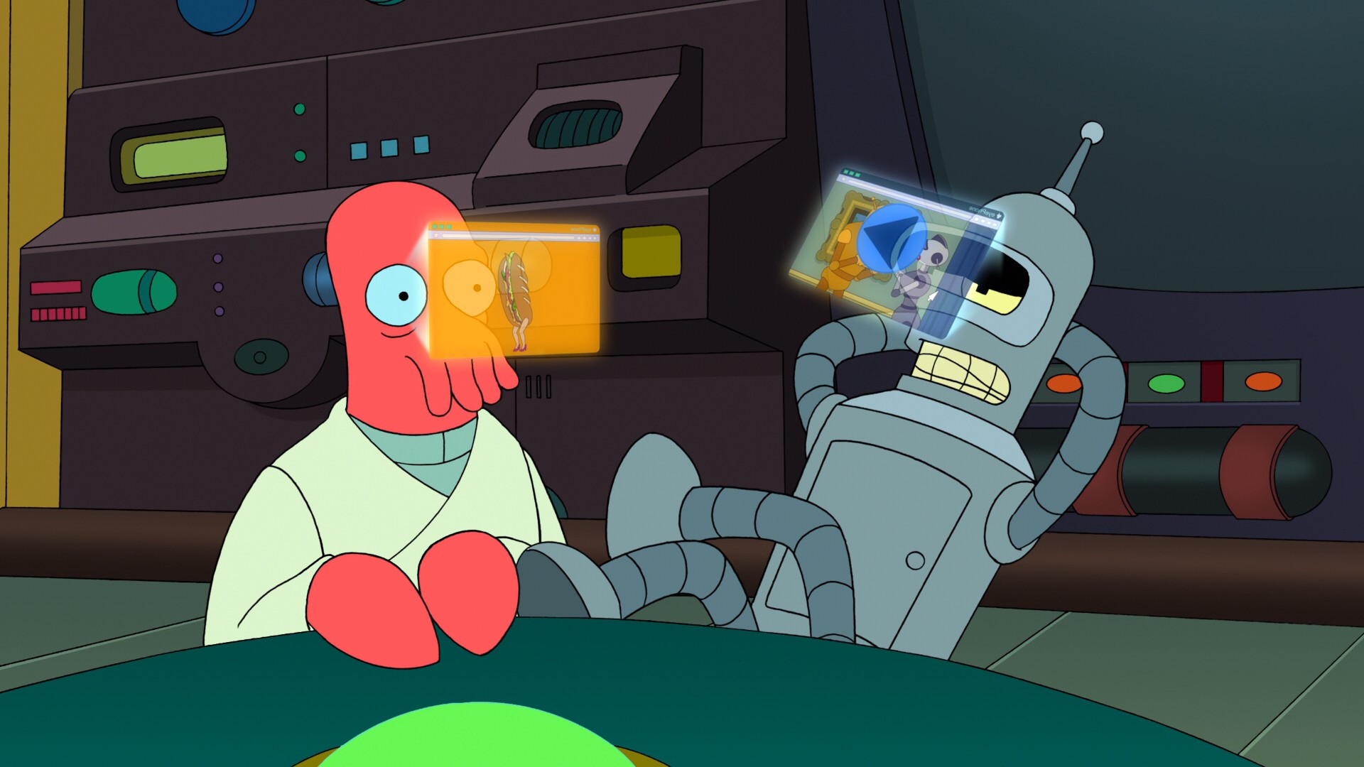 А в это время Мамочка запустила собственный вирус. Однако на Фрая и Лилу он не действовал. На Фрая - поэтому, что у него отсутствют дельта-волны в мозгу, а на Лилу - просто так как она не подписалась на блог Фрая.